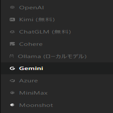 翻訳に使用するサービスプロバイダを選択します。今回は実質無料で使用できるGeminiを選択しますが、自身が使用したいものを選択しても構いません。