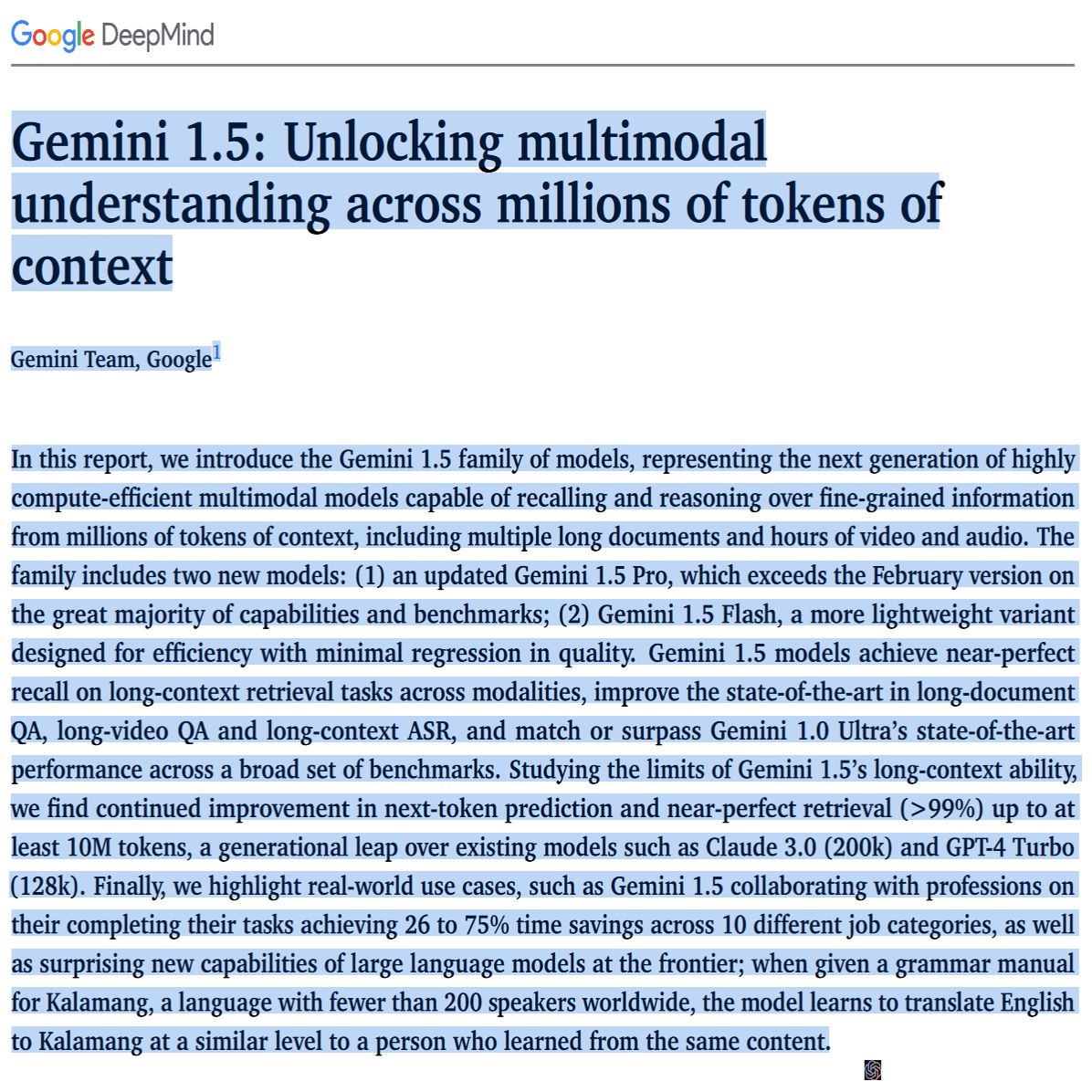 OpenAIに大幅に先手を取られたうえ、このAIを出したら世界に大きな問題が起きるので出せないというようなビッグマウス的な噂の流布があったにもかかわらず、出てきたBardががっかり性能だったことや、Geminiデビュー時のプロモ映像が編集された誇張表現を含んだ上に、性能でもGPT4の後塵を拝したことで、評価が冴えないGeminiシリーズなわけですが、4月の多言語アップデートを経て、特に日本語性能は向上しており、他のLLMに引けを取らないものになりつつあります。