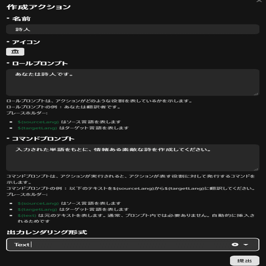 OpenAI Translaterに送ったtext情報をデフォルトでどう処理するかを選べます。