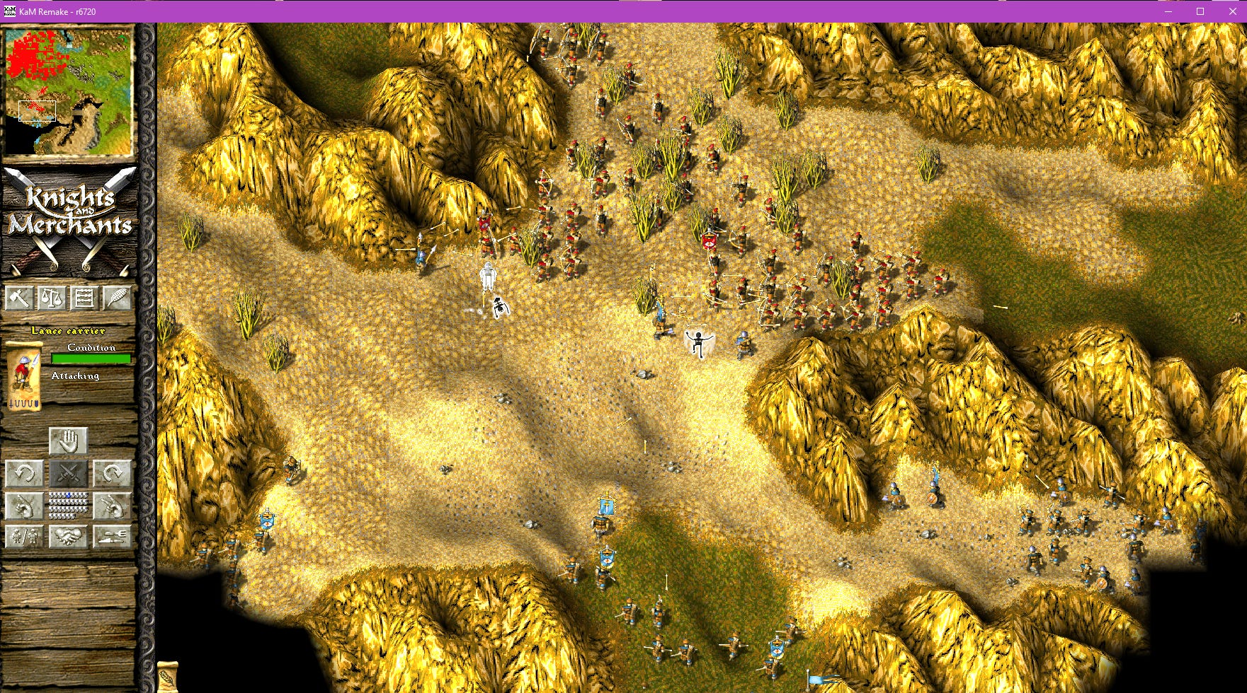 Where the likes of Starcraft are extremely fluid, allowing for crazy back and forth exchanges, Knights and Merchants is a deeply rigid game. Building your town is akin to chiselling a statue out of a stone block. A delicate process and if you hit the wrong spot too hard, it will crack or break off and you're done. While the combat is much like real life combat, in that you can't heal damage while fighting. You don't have a health-bar or hit-points. Small wounds and injuries don't really matter, and the first major one is likely to take you out. In other words, just like in real combat it's all about avoiding taking that major hit to a critical area.