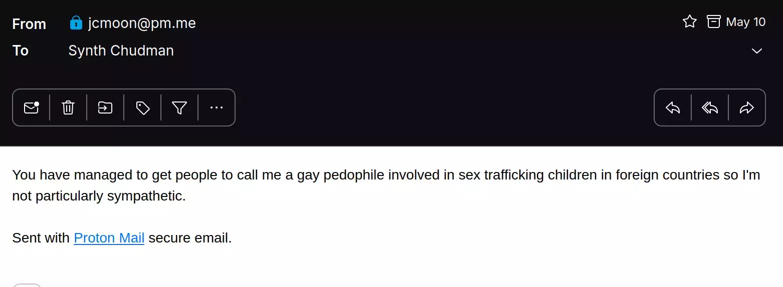 Madness followed. The Synthetic Man Appreciation Thread topped the Kiwi Farms trending chart like a hit Linkin Park album in 2007. ‘Tourists’ flooded the thread. And the gay circle jerk was smashed to pieces.