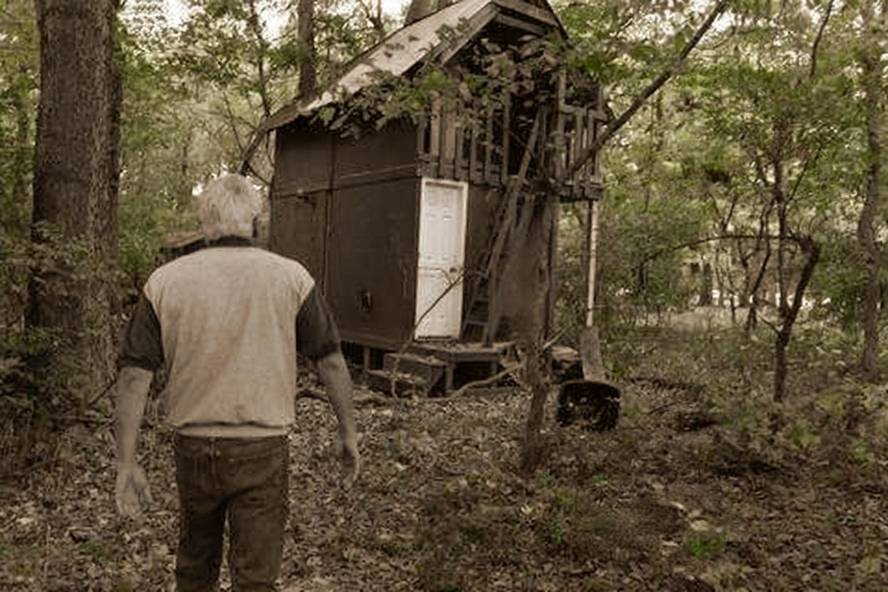 He died in this “treehouse,” which appears to be an attempt to infantilize Joshua, as it is very plainly a tiny home on the ground, not a child’s “treehouse.” Was he living here full-time?