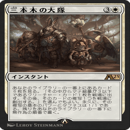 またデッキのマナカーブの頂点である《三本木の大隊》も打てるようになっているので、相手のエンド時に撃って盤面を強化し、急にゲームを畳もう。