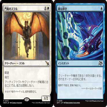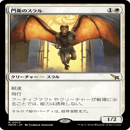 投入カードはやはり《門衛のスラル》。《タンク喰い》の仕事を遅らせるための《跳ね弾き》。