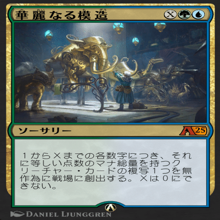 第2章で2マナ以下をデッキから呼び出す。第2章というのが大変いやらしく、相手視点では全体強化された時点で全除去したいのに、次ターンにクリーチャーが確定で出てくるのが分かっているから撃ちづらい。