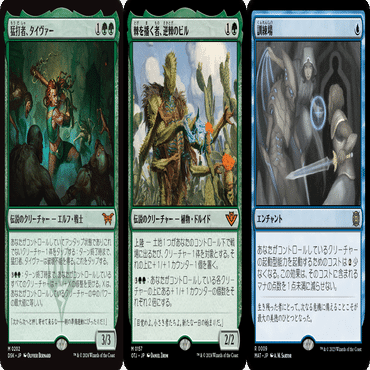 カウンター構えに対して《新緑の死者》や《猛打者、タイヴァー》の全体強化でずらせる。