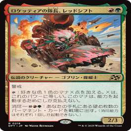 《ロケッティアの隊長、レッドシフト》かそれを煮込んだ釜が場にあれば、1回目のタイヴァーの起動でパワーが上昇し生み出せるマナが増えるので、3回起動も狙える。レッドシフト本体であれば警戒により自分もアタッカーにカウントできる点も強み。(割と相手の計算を狂わせやすい)