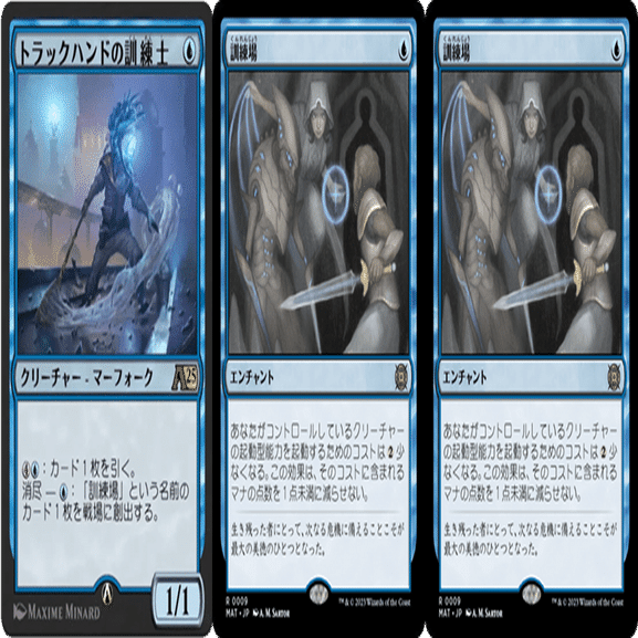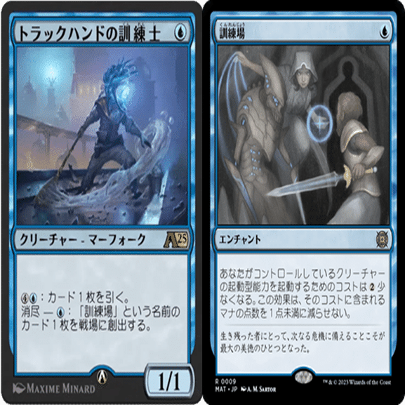 《訓練場》を2つ創出できた状態にできれば、《トラックハンドの訓練士》は青1マナで1ドローできるようになり、他のミッドレンジには負けないほど高効率なリソース源になる。