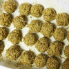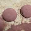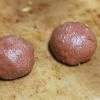 골고루 섞어준 후 25~30g 정도로 하나씩 빚어주세요. 단단하게 만들어지지는 않아서 동그랗게 뭉친다고만 생각하심 됩니다. 만든 후에는 냉동실에 잠시 굳혀주세요. 그래야 뒤 작업이 편해요.