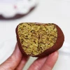 반으로 잘라보면 안쪽의 카다이프와 피스타치오가 잘 자리를 잡았어요. 겉은 쫀득한데 안쪽은 바삭한 맛이 너무 맛있더라고요.