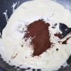 이제 불을 끄고, 코코아 파우더와 탈지분유를 넣고 골고루 섞은 후 넓은 쟁반에 부어주세요.