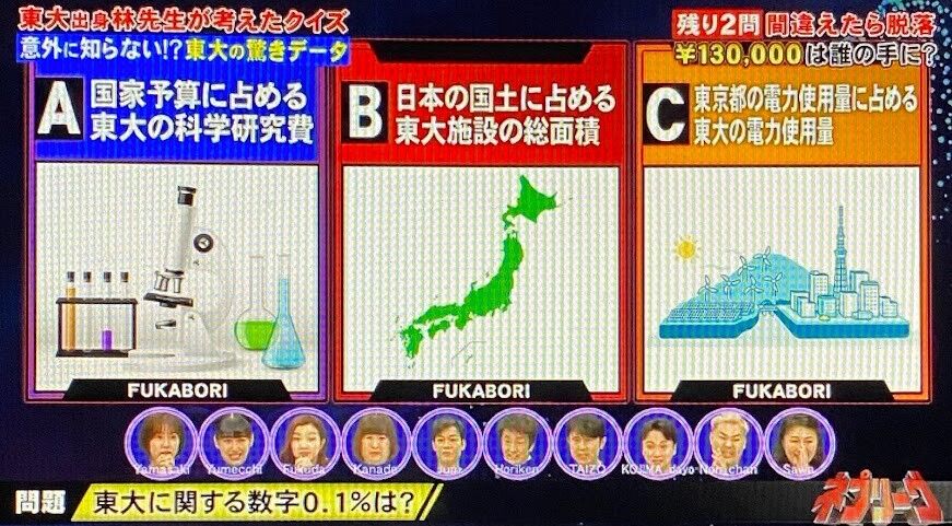 A:国家予算に占める東大の科学研究費→0.02%