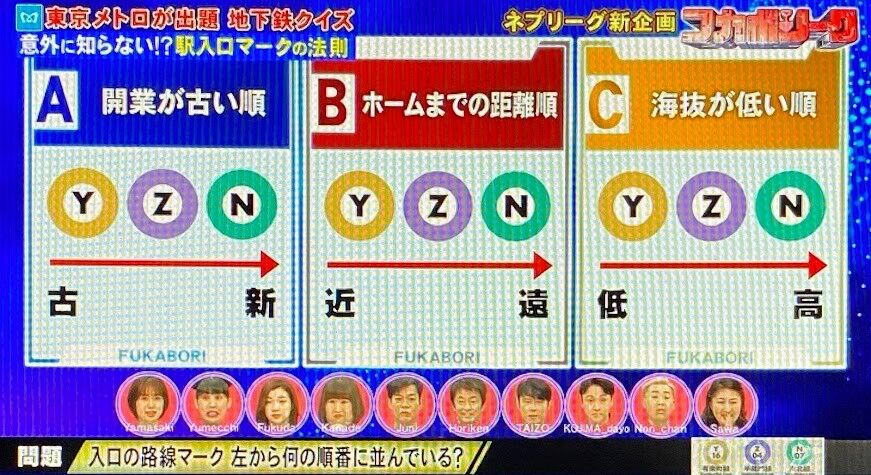 7,入口の路線マーク。左から何の順番に並んでいる?
