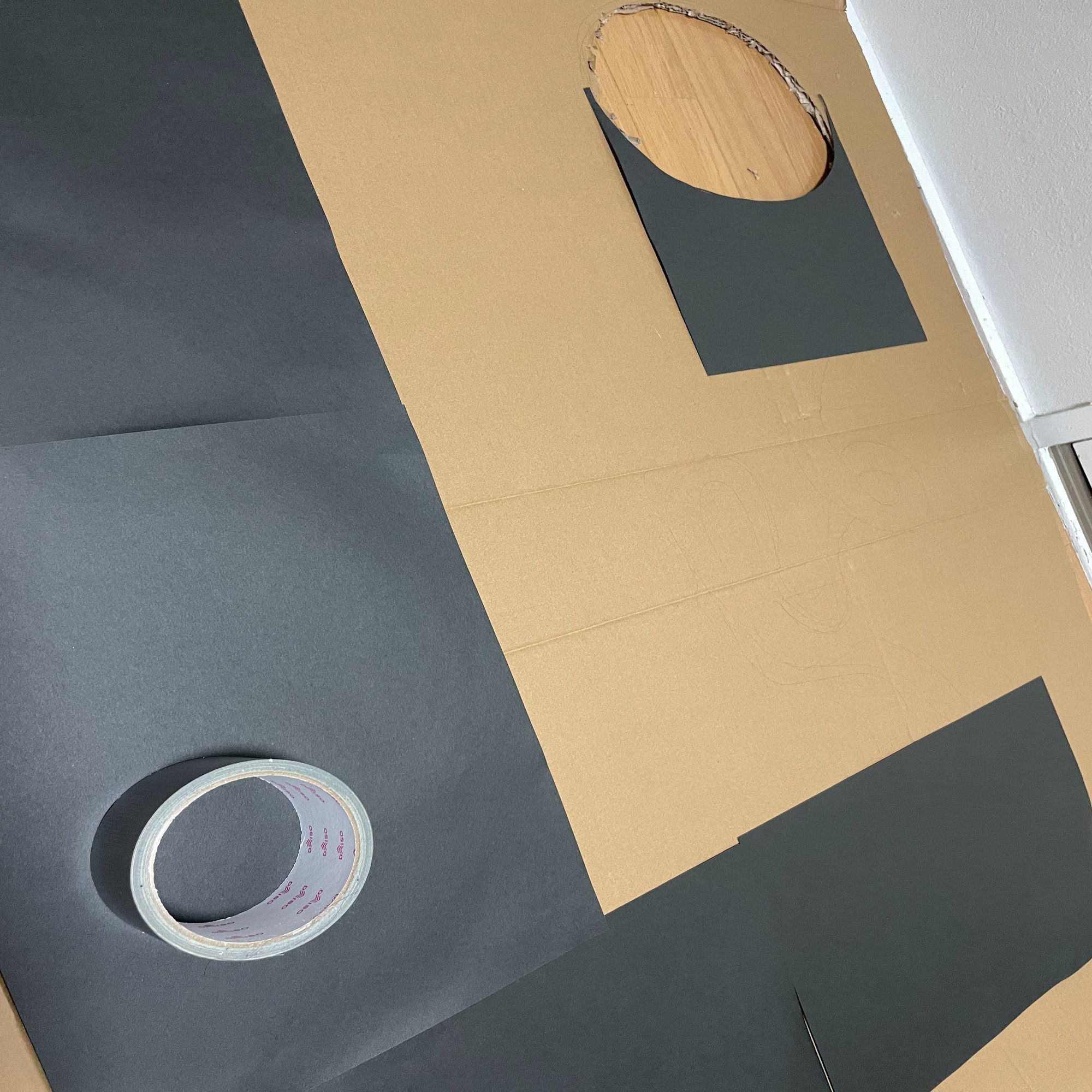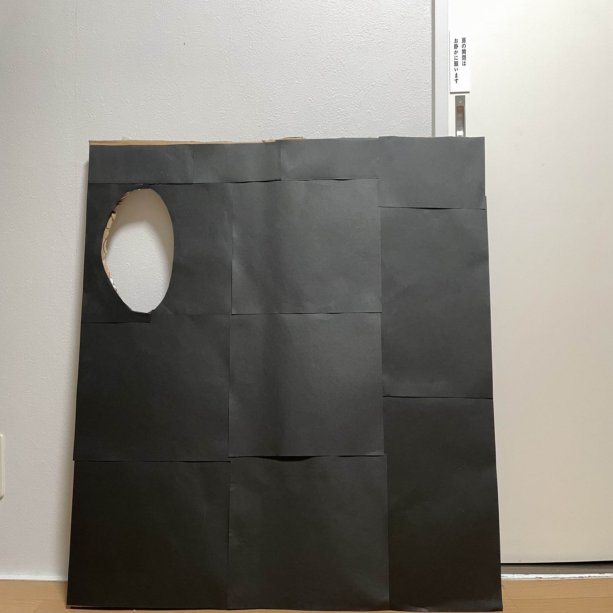 黒をベースにしたいので、偶然家に大量にあった黒画用紙を全面に貼り付けます。