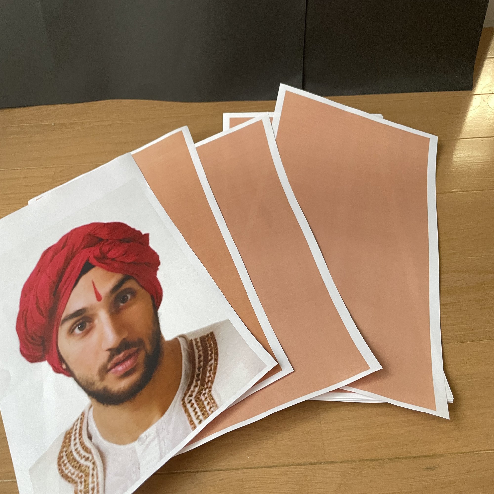 フリー素材のインド人さんとその顔の色をスポイトで抽出した紙。