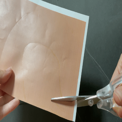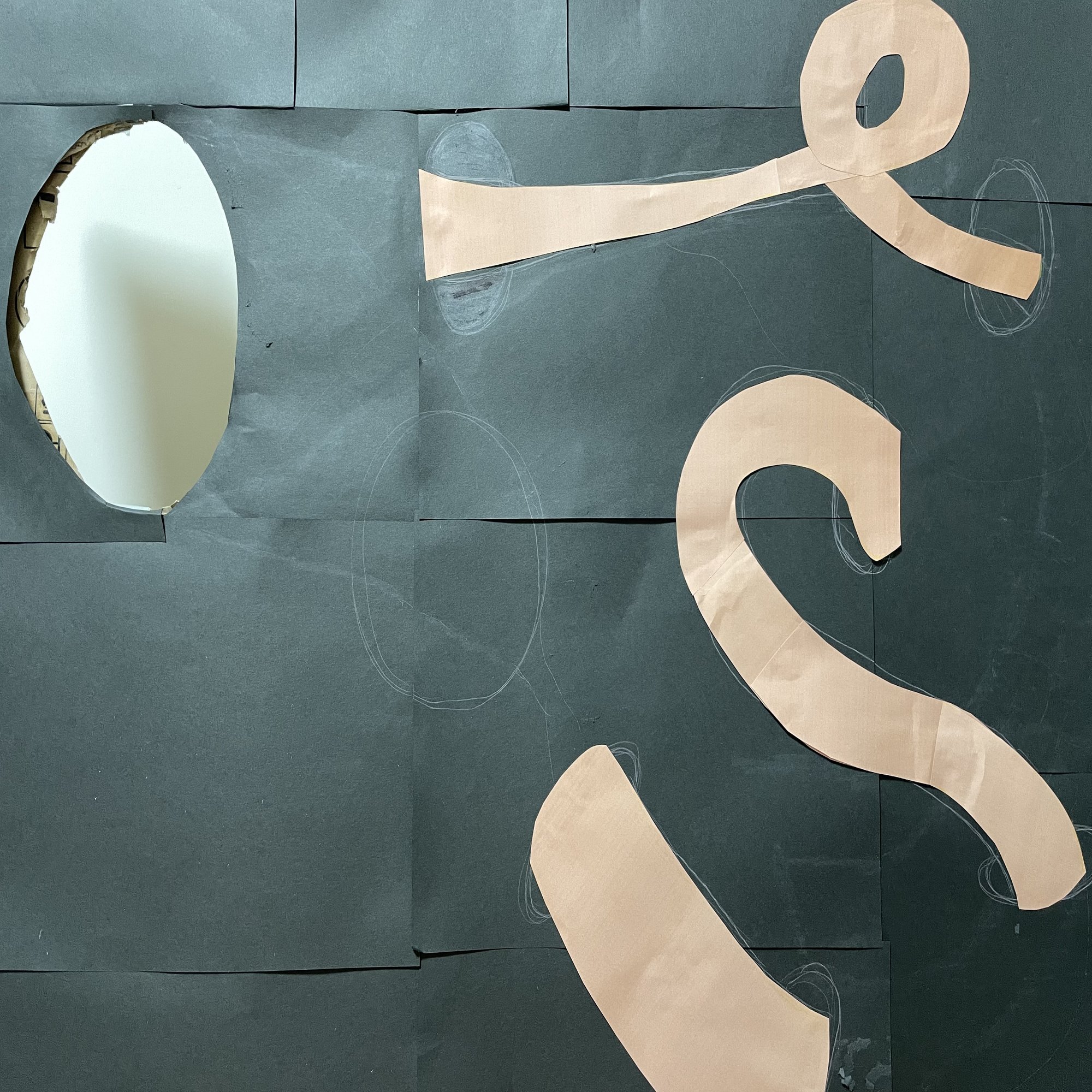 顔色の紙を下描きに合わせて切り貼りする。