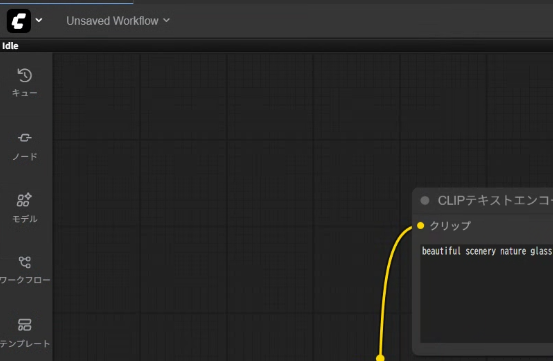 画面の左側にはこのようなメニューバーがあります。5つのボタンで「キュー」「ノードライブラリ」「モデルライブラリ」「ワークフロー」「テンプレート」の一覧を開けます。