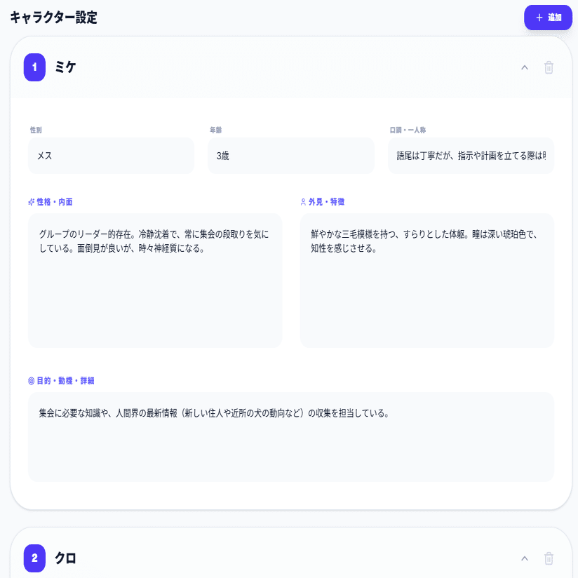 こちらは登場人物の設定をするページになります。