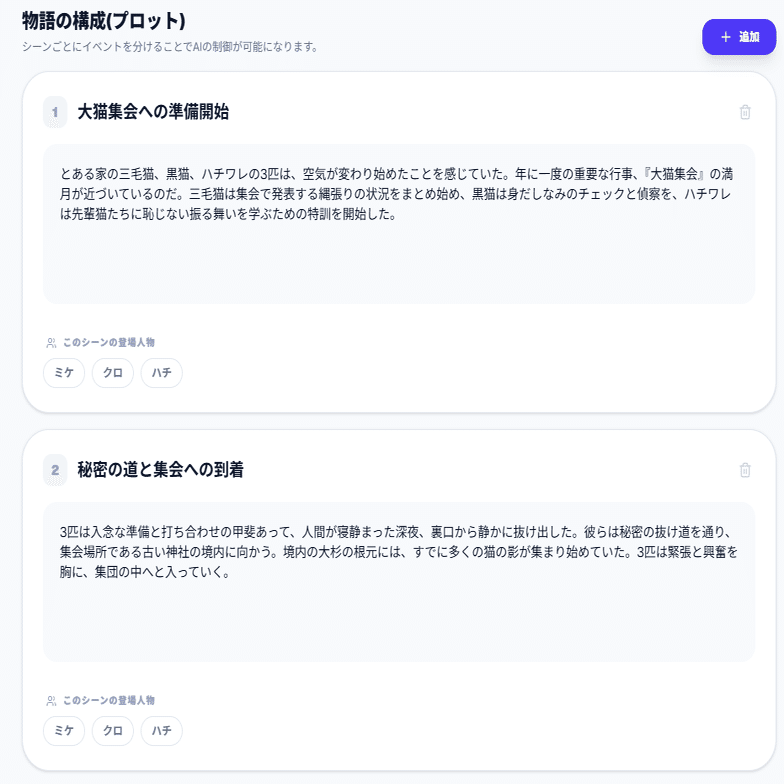 AIに「今どの部分を書いているか」を明確に伝えることが出来るため、AIは指示されたシーンを的確に書くことが出来ます。