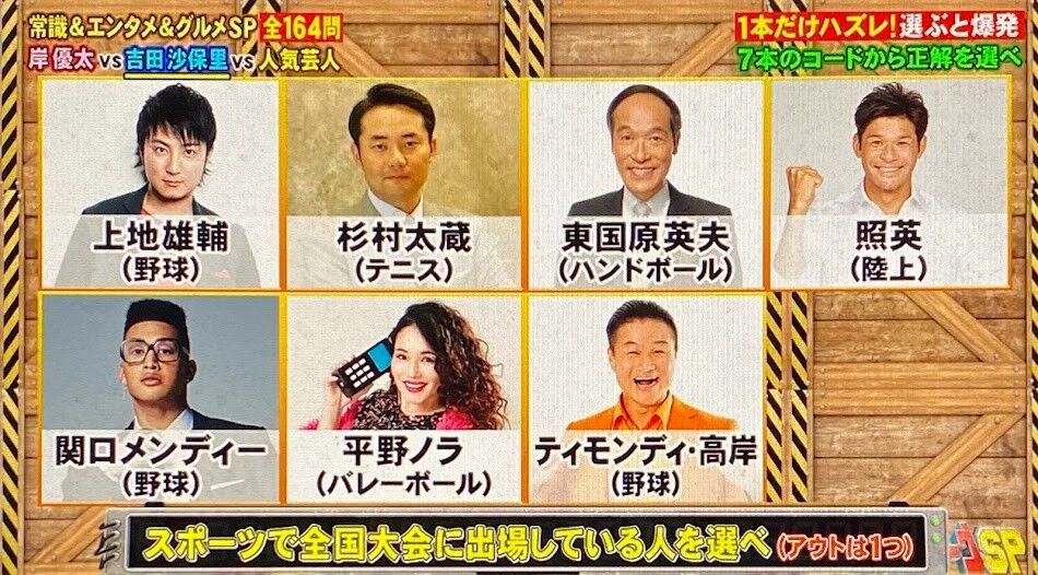 2,次の7人の有名人のうち、1人だけ全国大会に出場していない人がいるので