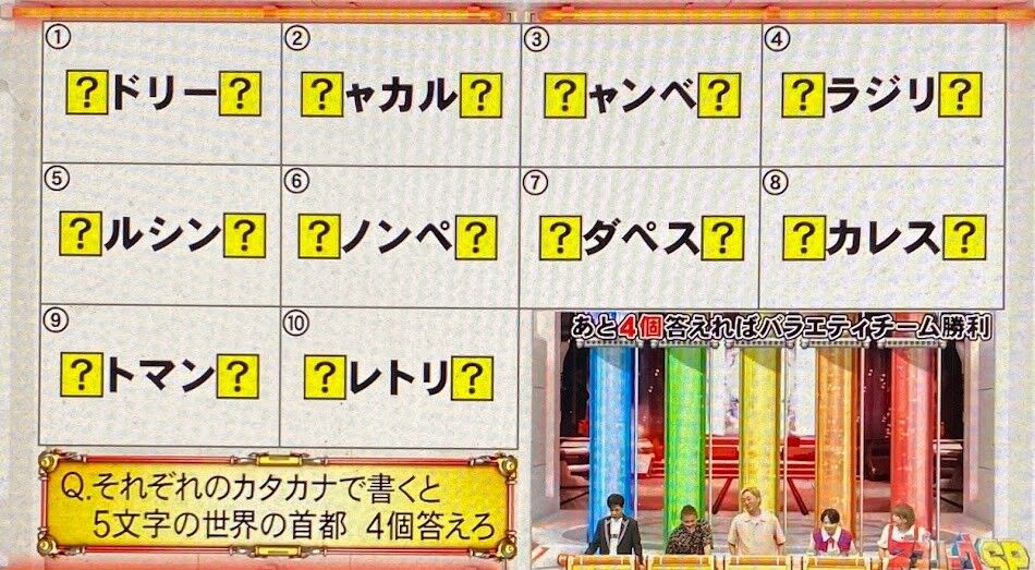 8,それぞれのカタカナで書くと5文字の世界の首都 10個すべて答えろ