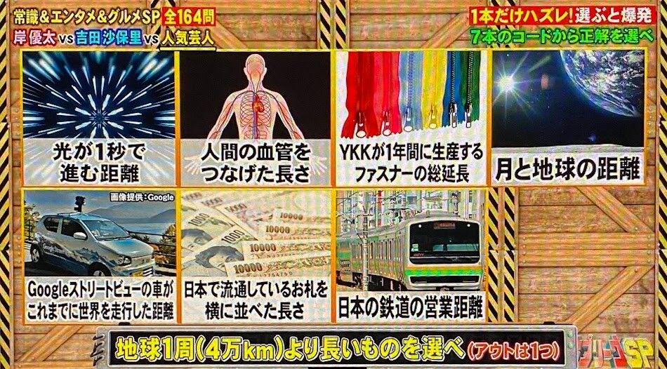 3,この中で地球1周(4万㎞)より短いものが1つあるので、それを当ててください
