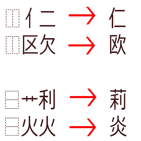 まず初めに基本となる⿰と⿱を紹介します。基本なのでテーマカラーは赤です。