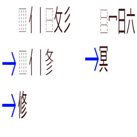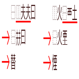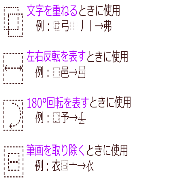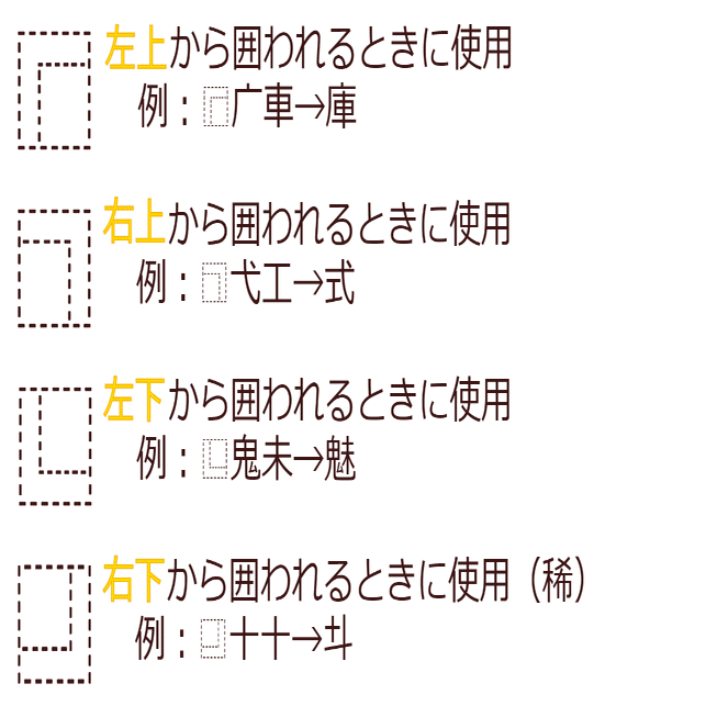 ・一番下だけ従来と順番が異なり、(元の字)(取り除くパーツ)の順番で表す