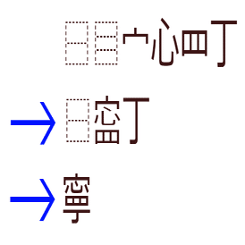 なお、字によっては4つ以上のパーツを縦や横に並べる必要があることもあります。その場合組み合わせて何とかしてください。