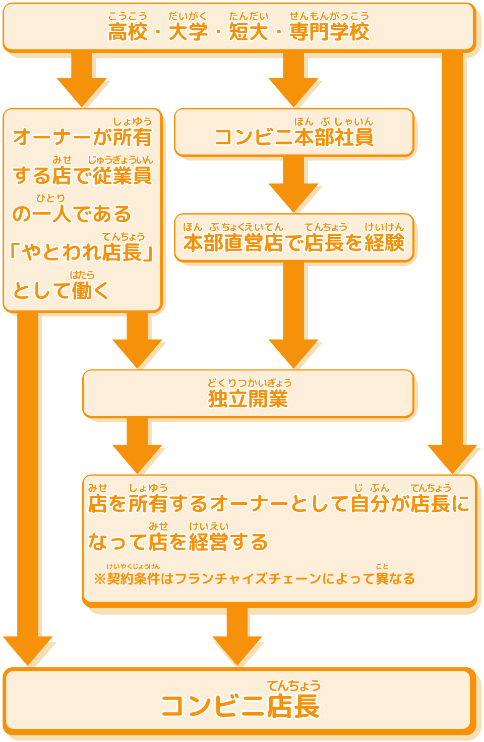 It's a chart that shows at a glance the main routes to getting a job as a convenience store manager!