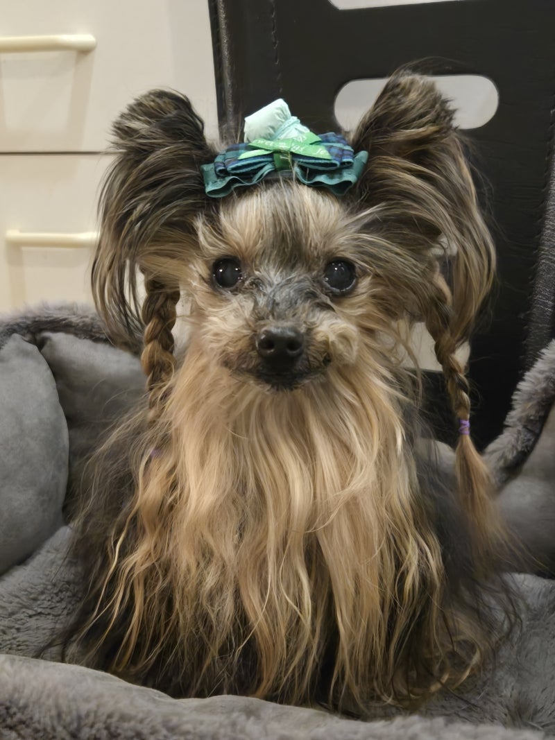 ミニーちゃんのヘア止め、今日の装いにピッタリですね