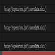 例えば、上面・側面の文字のソーステキスト、位置、スケール等にはそれぞれ以下のblock関数を呼び出す共通のエクスプレッションが設定されていて、関数の内部でレイヤー名やプロパティ名などを用いて条件分岐を行い処理しています。