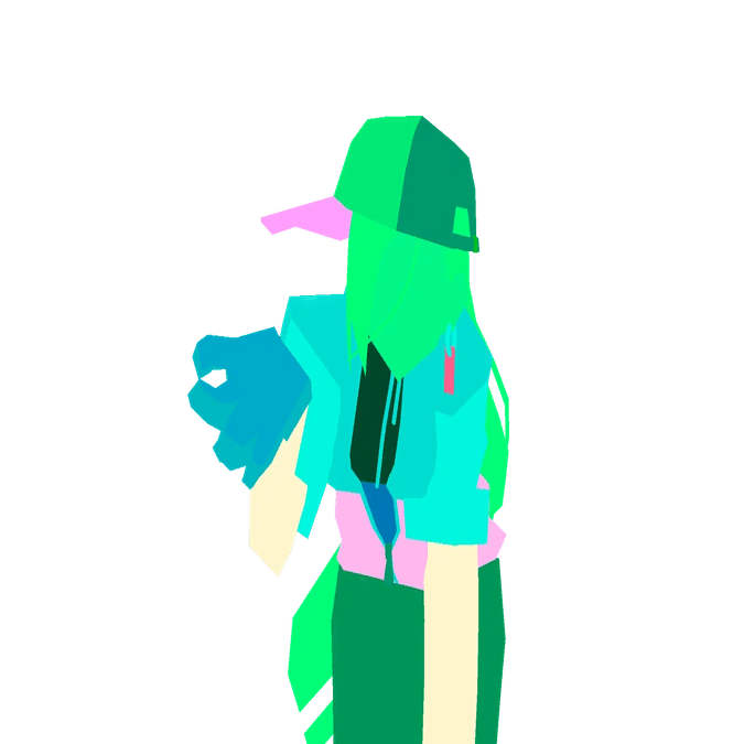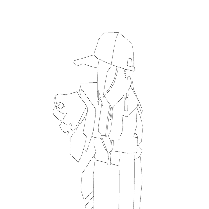 モデルはカメラ画角からのみ綺麗に映る設計になっていまして、それ以外からの見た目は一切考慮していません。ので、設計段階で映らないことが決まっていた下半身とか背中側に至っては制作していません。