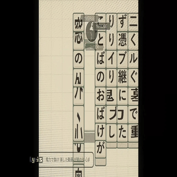 …が、左下の歌詞表示がモーラに合わせて少しずつスクロールして欲しかったので、テキストの横幅を楽に取得できることを理由にそこだけp5.jsでプリレンダして使ってます。