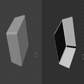 また、ボックスの奥側だけを見せるために、面の法線を全て反転させ、モデルの裏面を非表示に設定しました。
