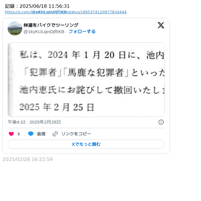 この投稿は、削除済み(2025年8月20日)であることを確認。
