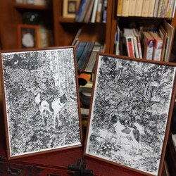 藪の絡み合う植物の様が好きでフリーハンドでプランツアートを描いてます。愛する犬さんもそこにいたりします。