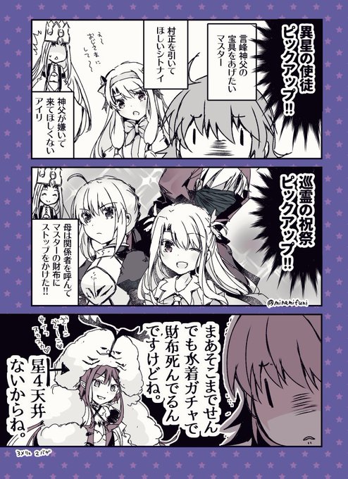 夏からのFGOのガチャ、えげつなくないですか?と思うぐだ子と、アイリとエミヤ家まわりの漫画です #FGO