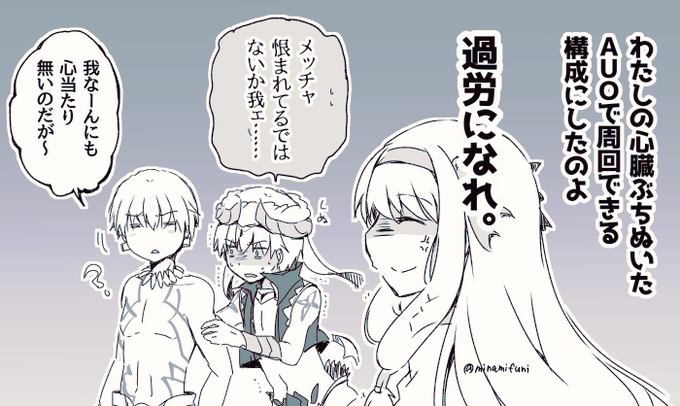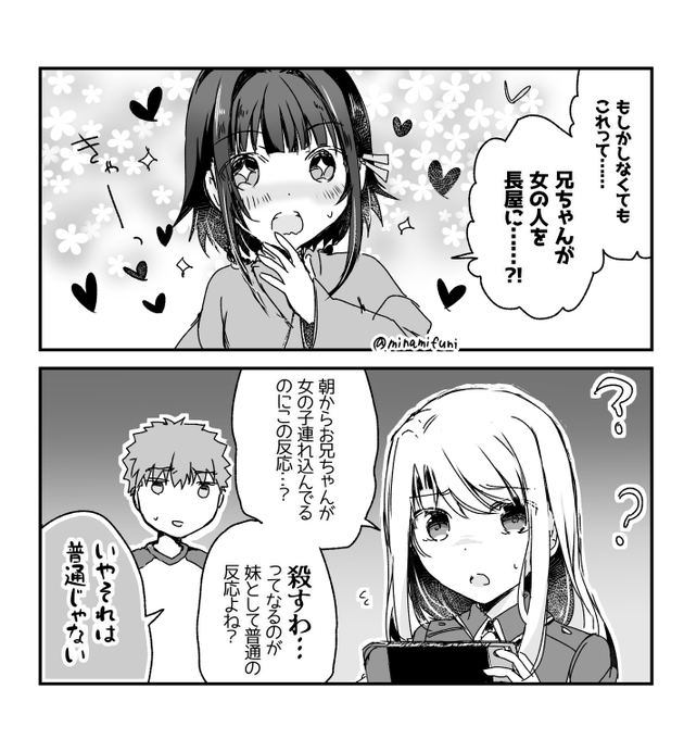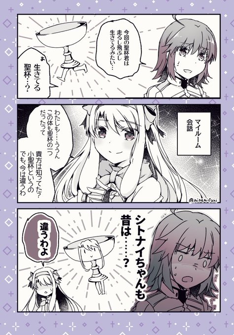 少し前の謎丸アニメの「どのエミヤ」会話が可愛かったので、シトナイちゃんとマシュの「どのシロウ」な会話漫画を描きました。 #FGO