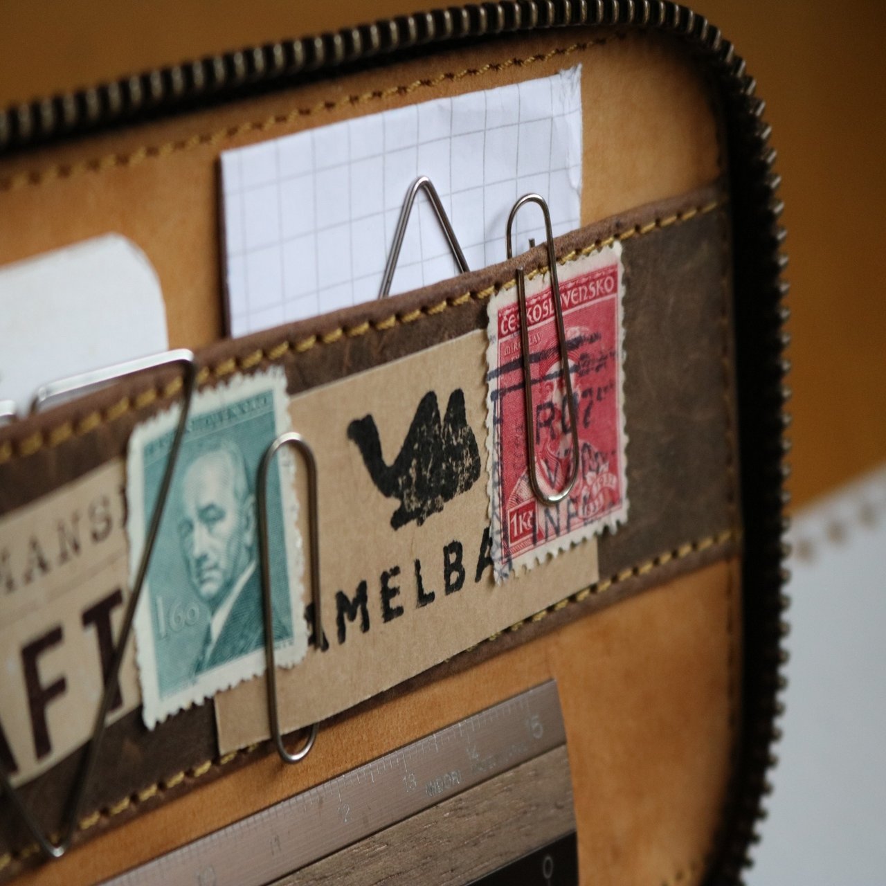 真鍮製のチャックで趣がある。ちなみにYKK製