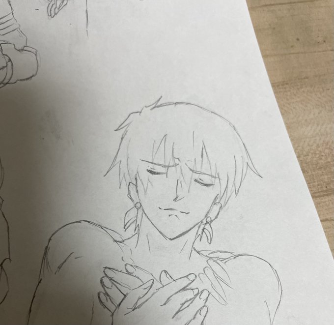 腹痛なので、腹痛なプロトアーサーを描きました(職場)