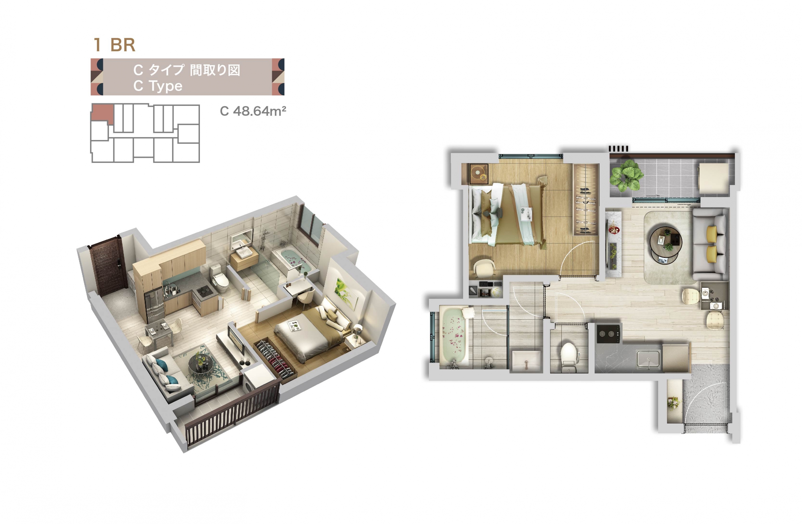 | C | 48.64 | 36.54 | 1BR |
