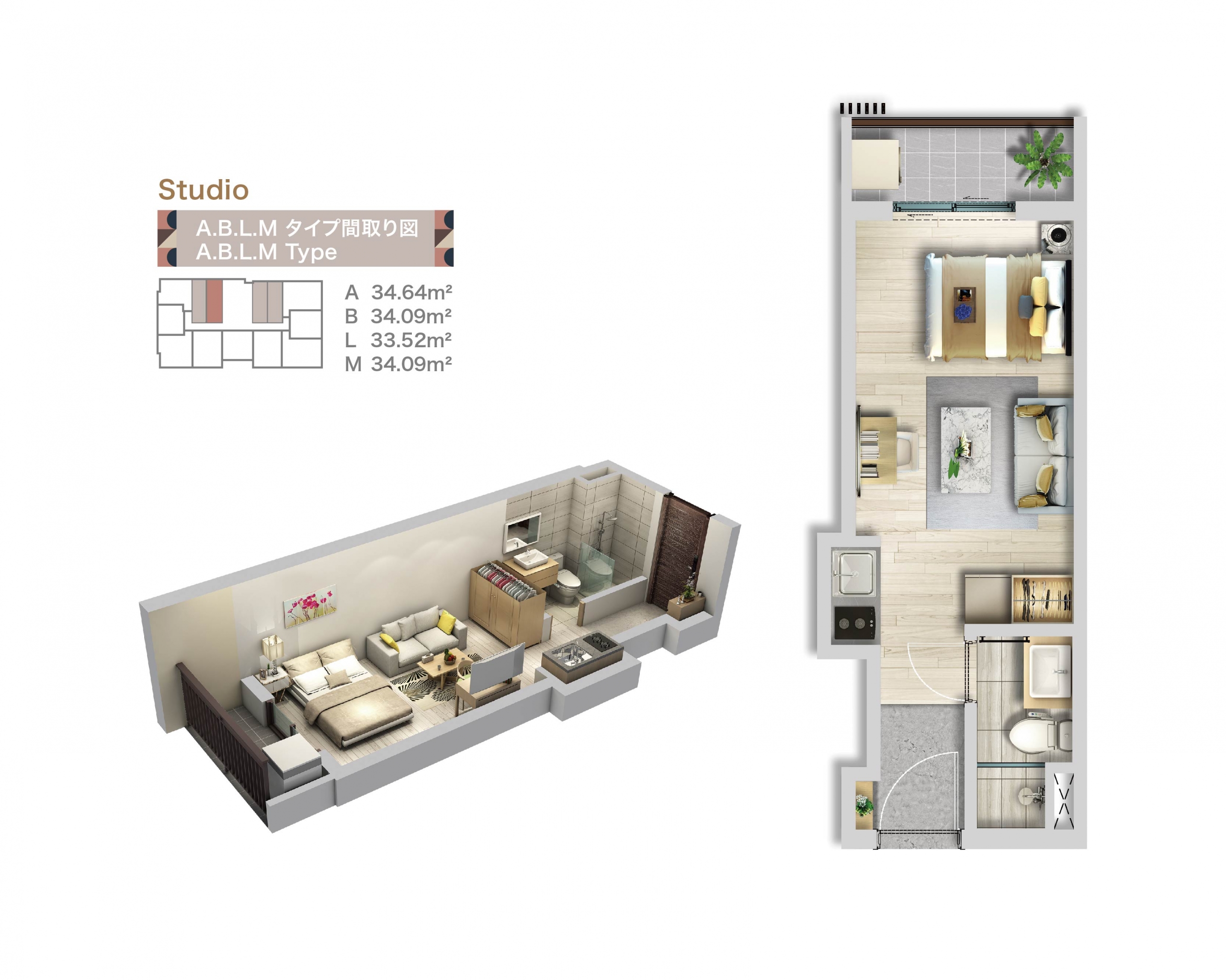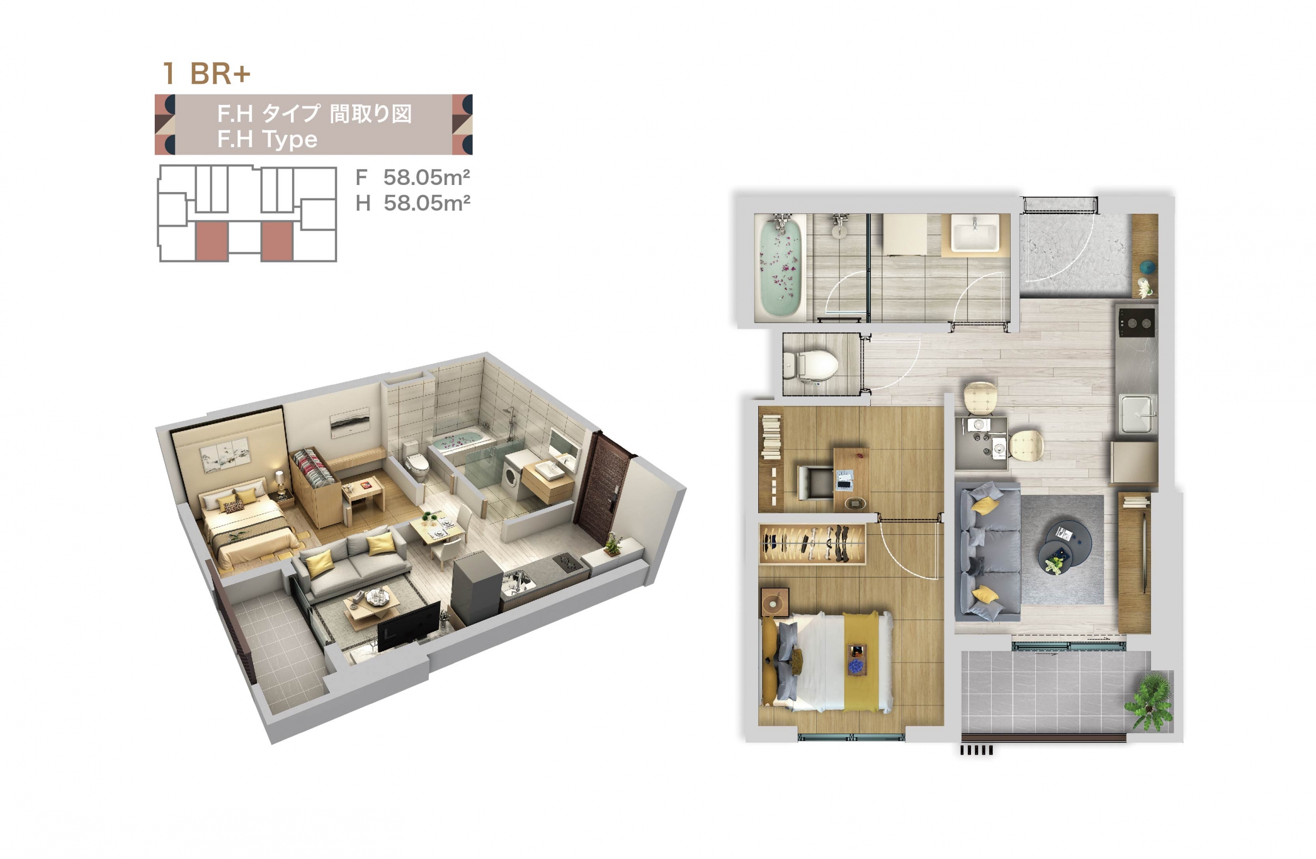 | H | 58.05 | 43.61 | 1BR+1 |