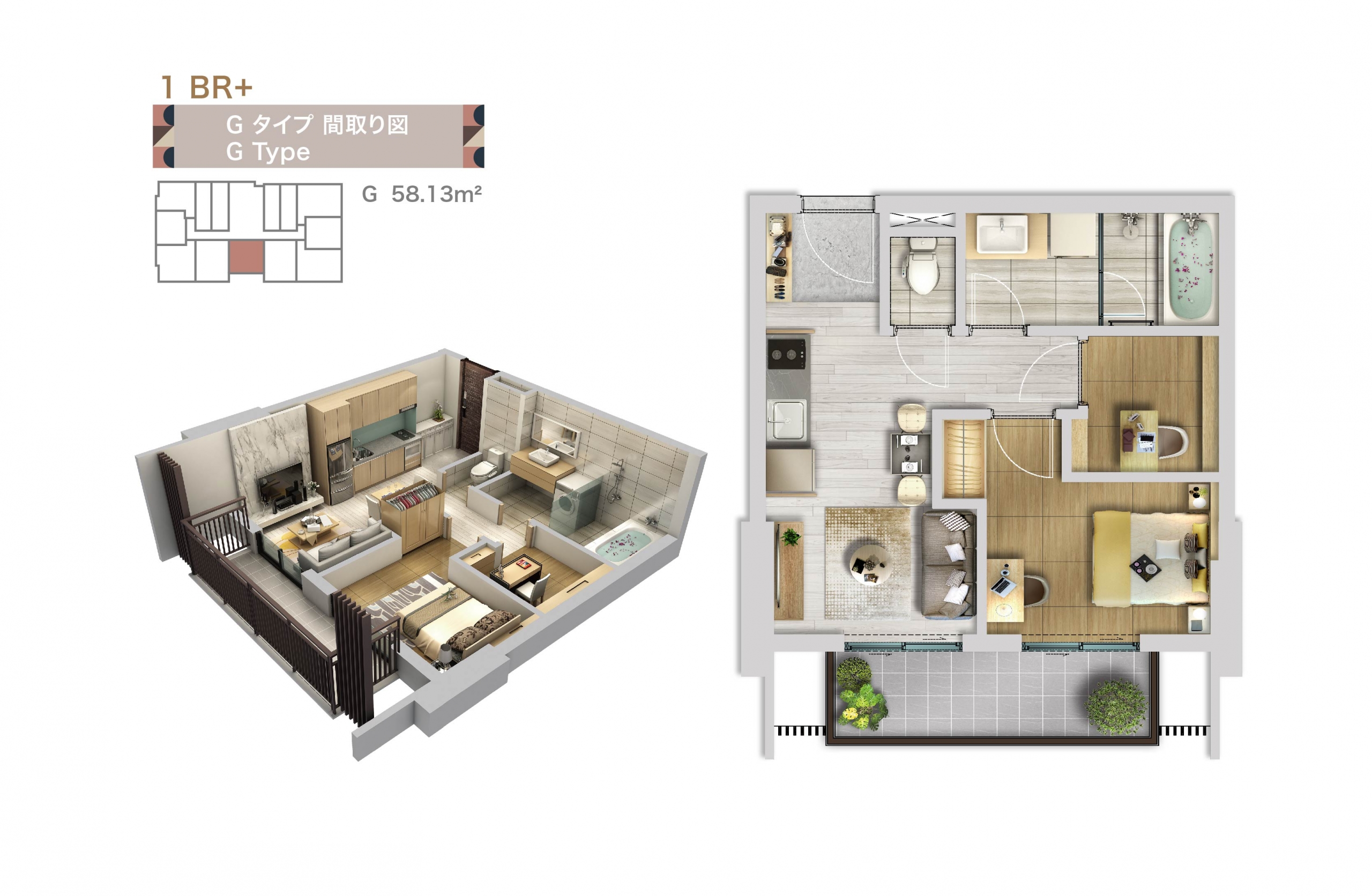 | G | 58.13 | 43.67 | 1BR+1 |