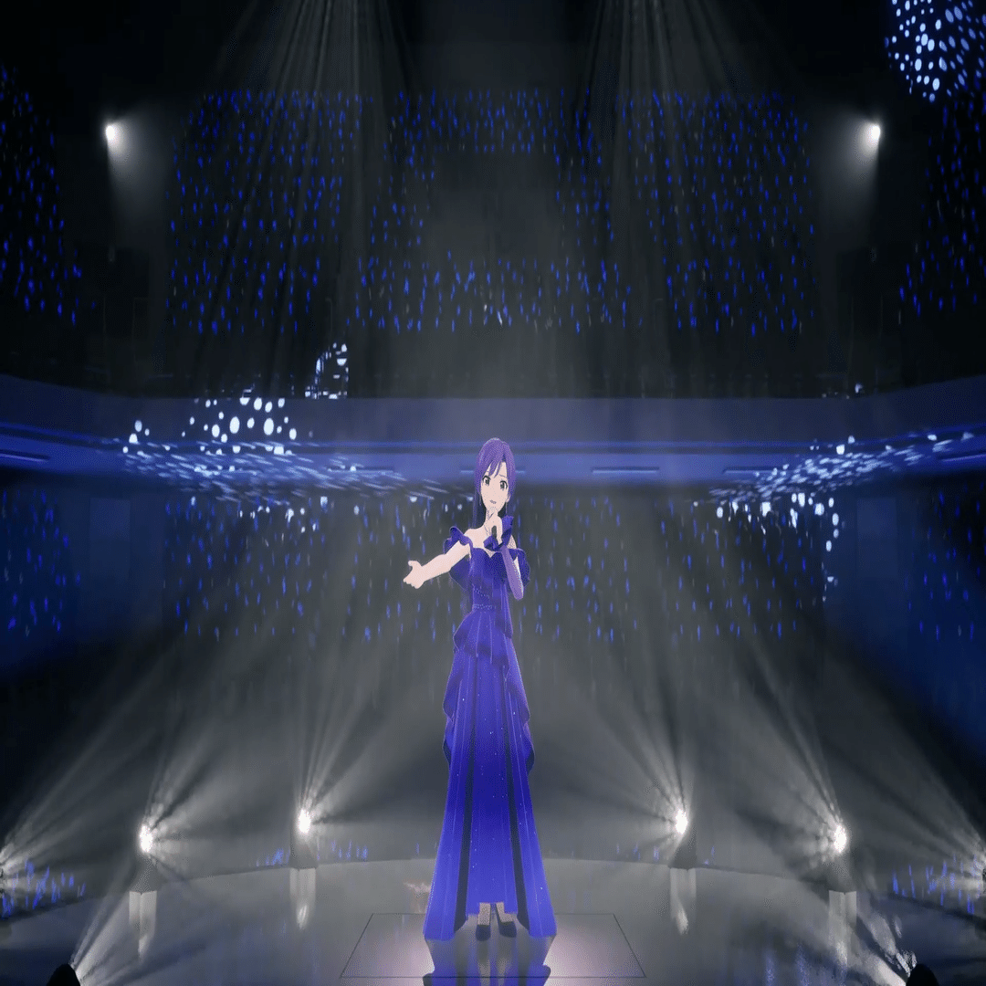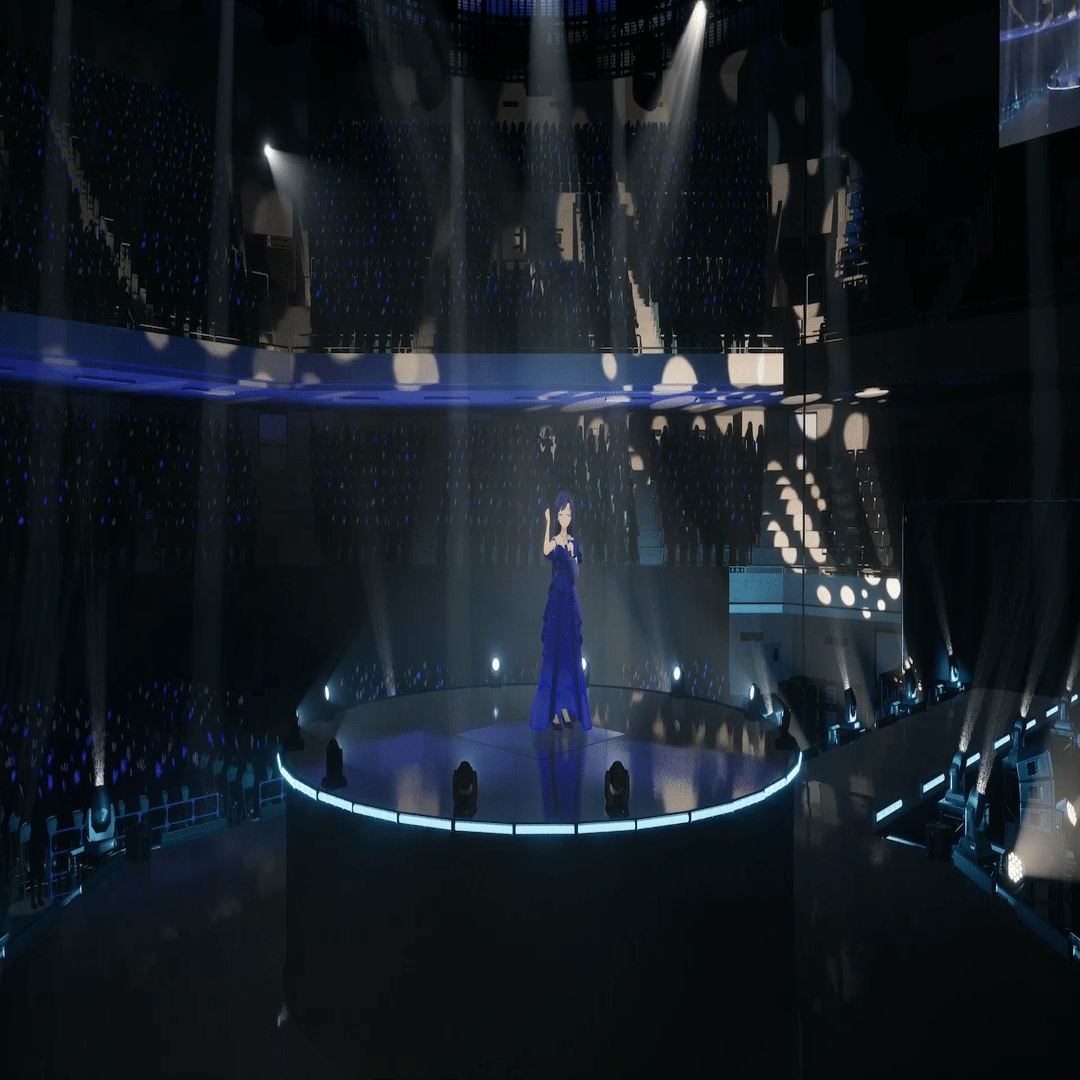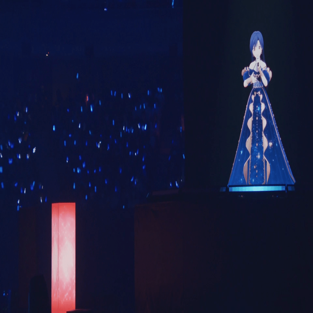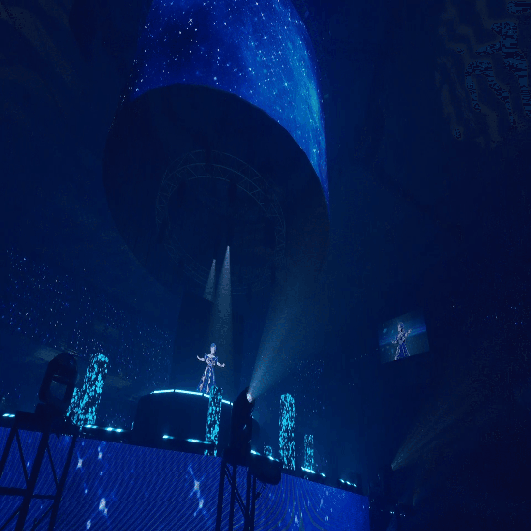 XRライブでセンターステージというのは前代未聞のことでした。3Dホログラムかと思いましたが、円柱状のスクリーンと思しきものが見えるだけ。