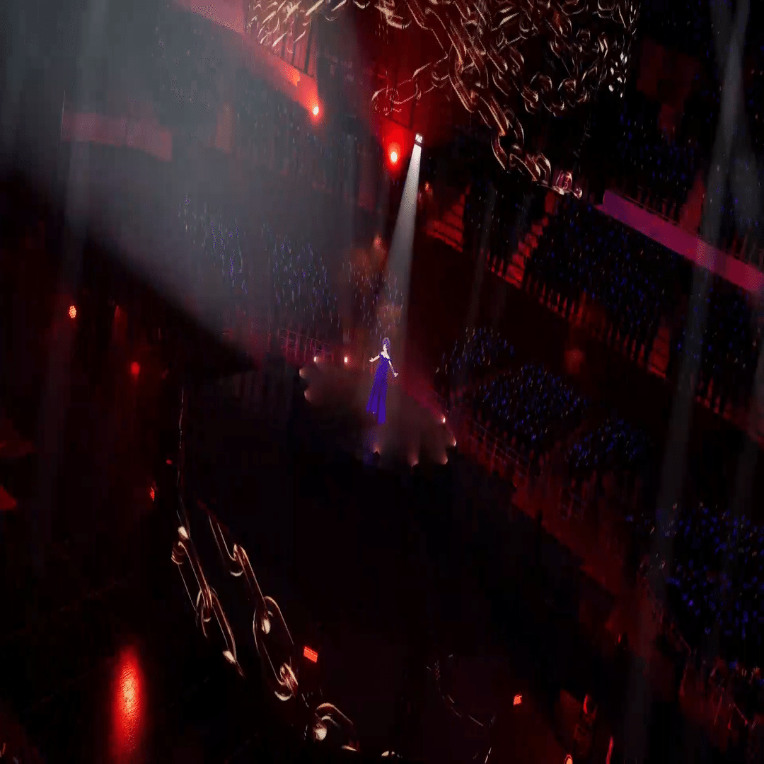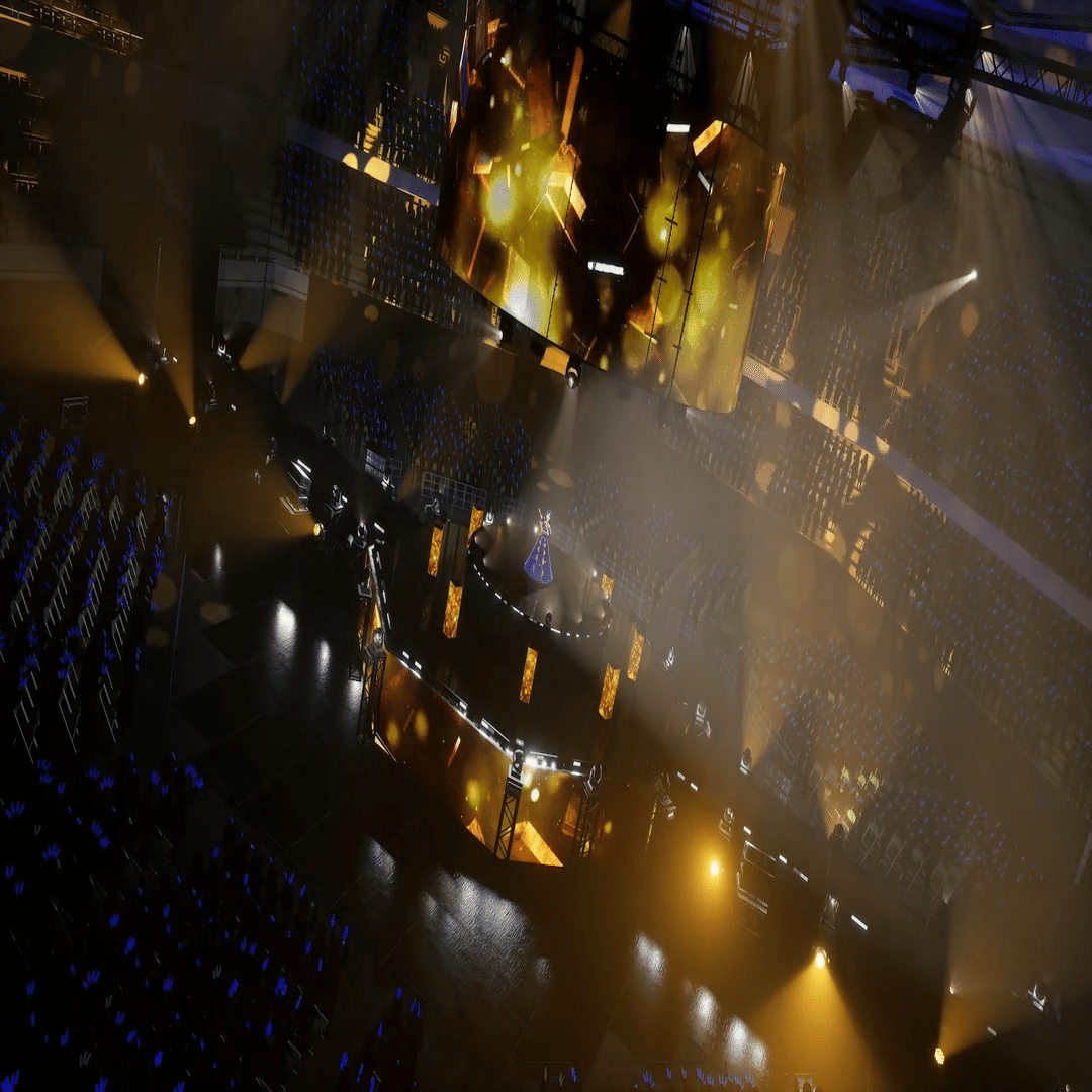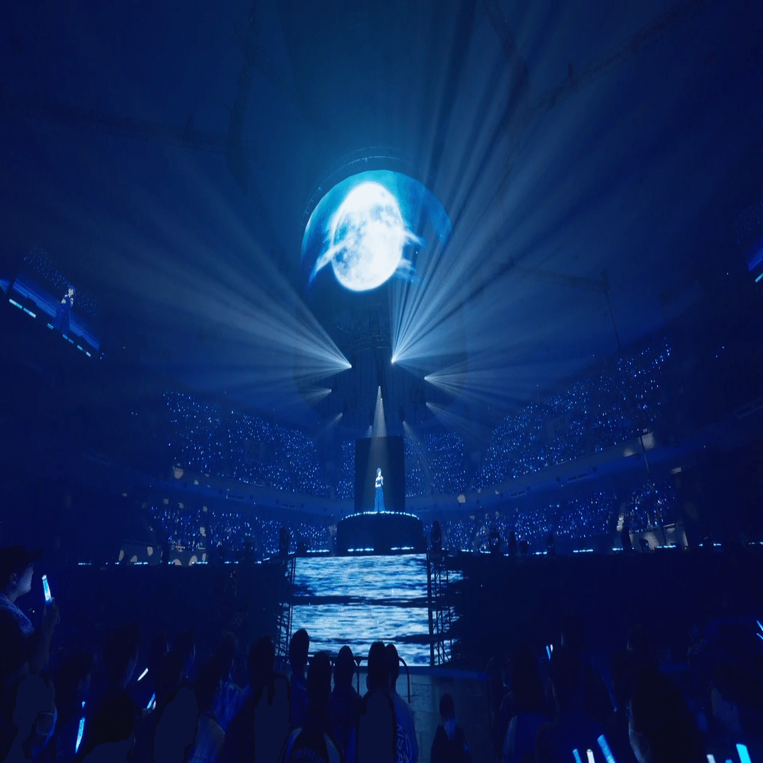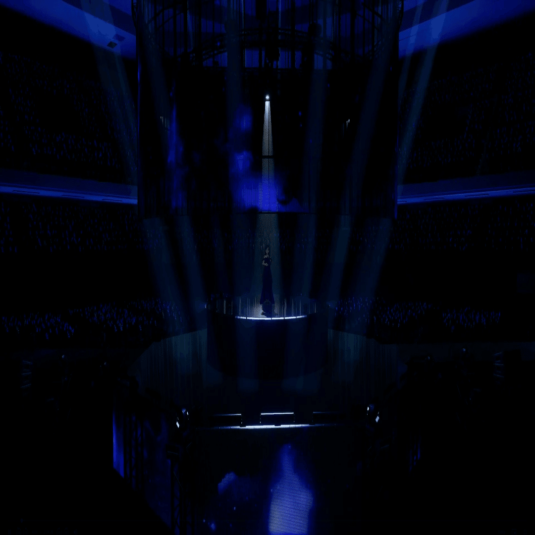 XRライブでセンターステージというのは前代未聞のことでした。3Dホログラムかと思いましたが、円柱状のスクリーンと思しきものが見えるだけ。