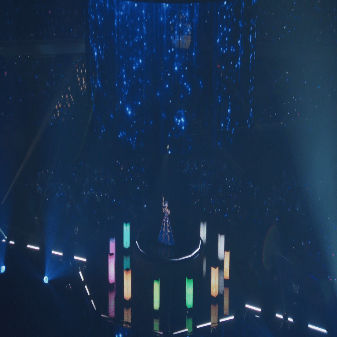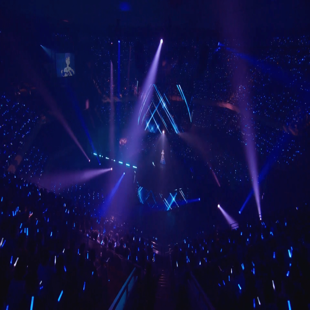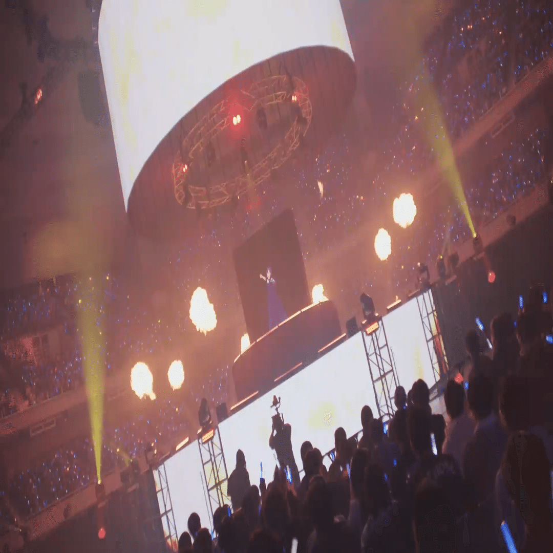 アリーナ席から見ると、彼女の体や衣装の輪郭、体への光の当たり方がはっきりとわかり、本当にそこにいるんだと改めて感じさせられ、美しく微笑み手を振る彼女に見惚れていました。