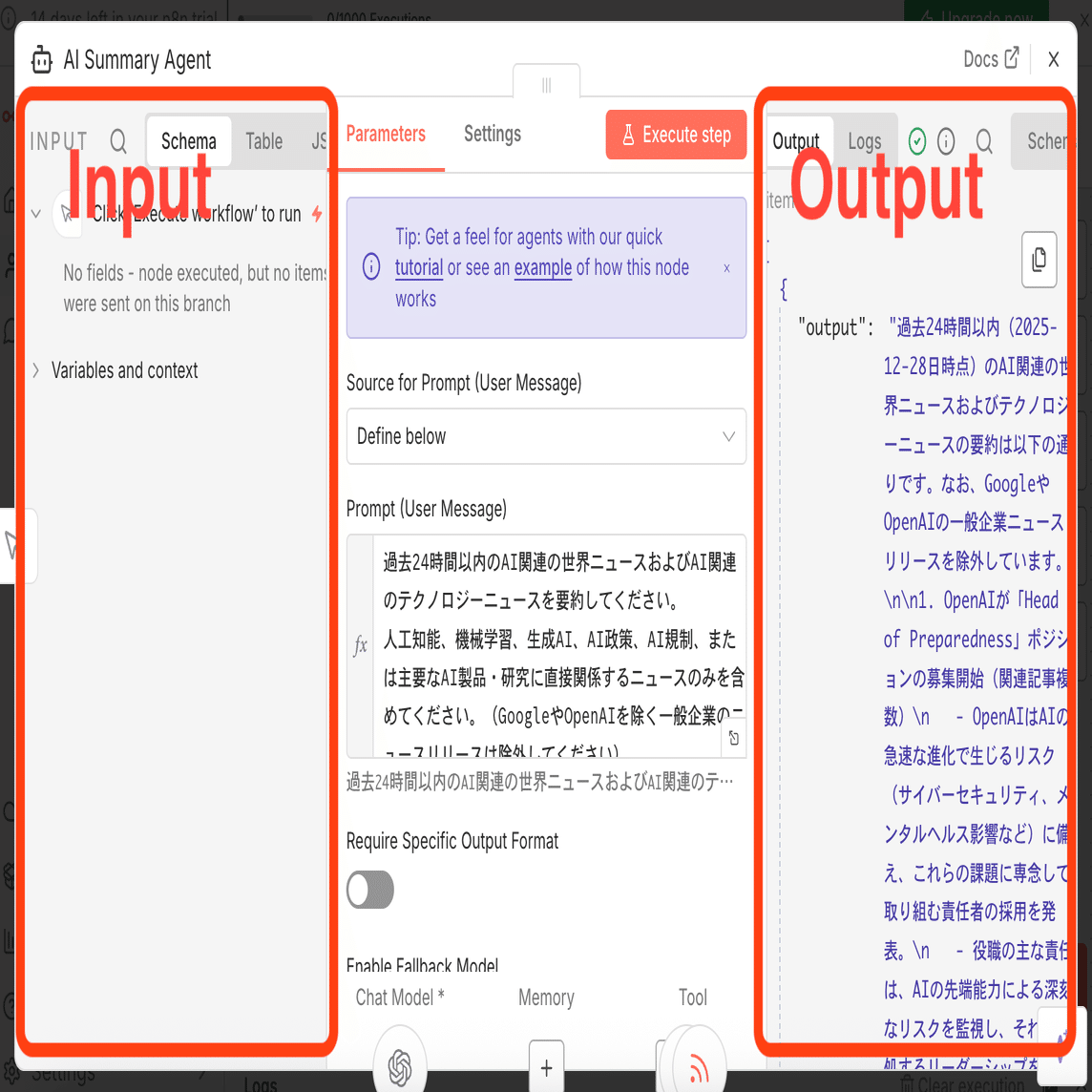 n8nのAIエージェント機能は、非常に強力です。