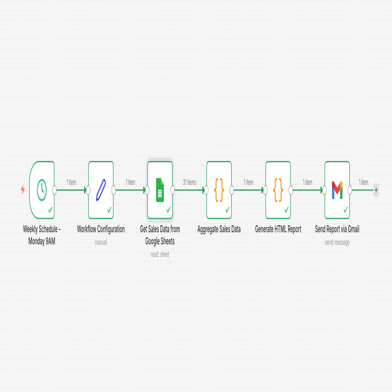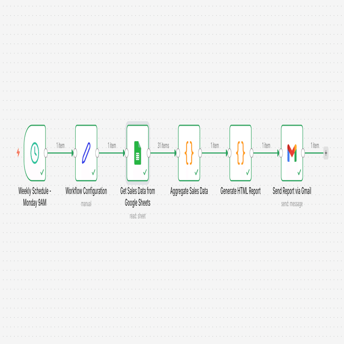 Google Sheetsのデータを自動集計し、週次レポートを生成してメール送信する自動化。