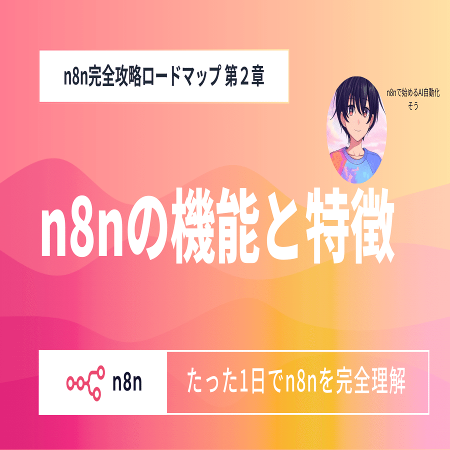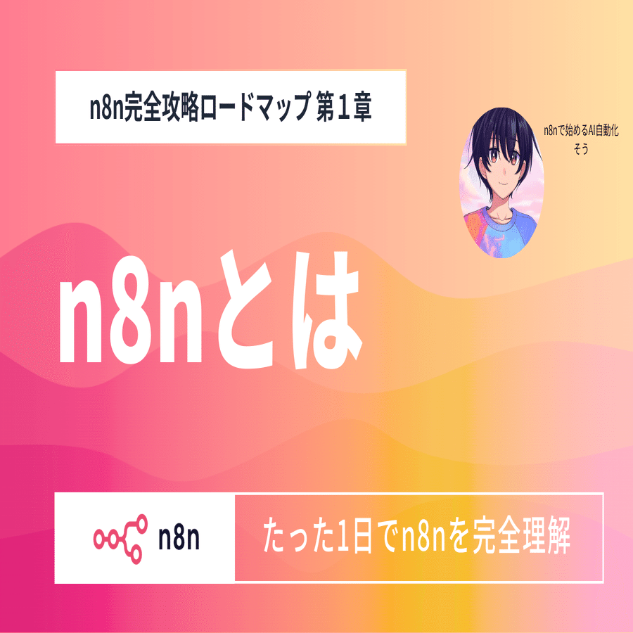 本noteは、n8nの初心者でも、今までよくわからなかった「n8n」を使えるようにする完全攻略ロードマップです。 約2万文字超 レベル、画像枚数70枚超 、学習用無料JSONファイル3本収録の超大作となっています。